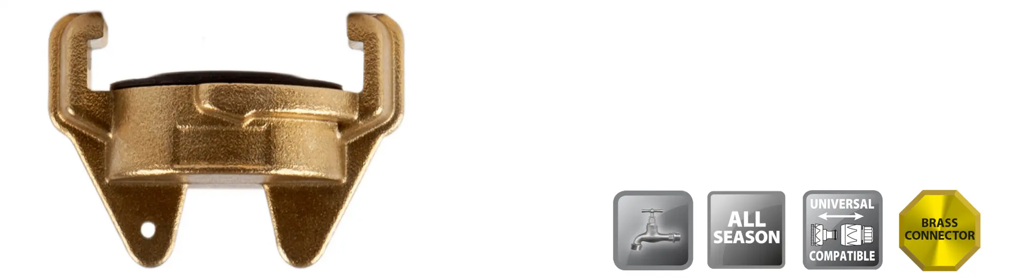 De koppeling sluit netjes af aan het eind van een waterleiding of slang, zonder druppels of waterverlies. Bovendien wordt het geleverd met een stevige rubberen dichtingsring voor extra zekerheid.