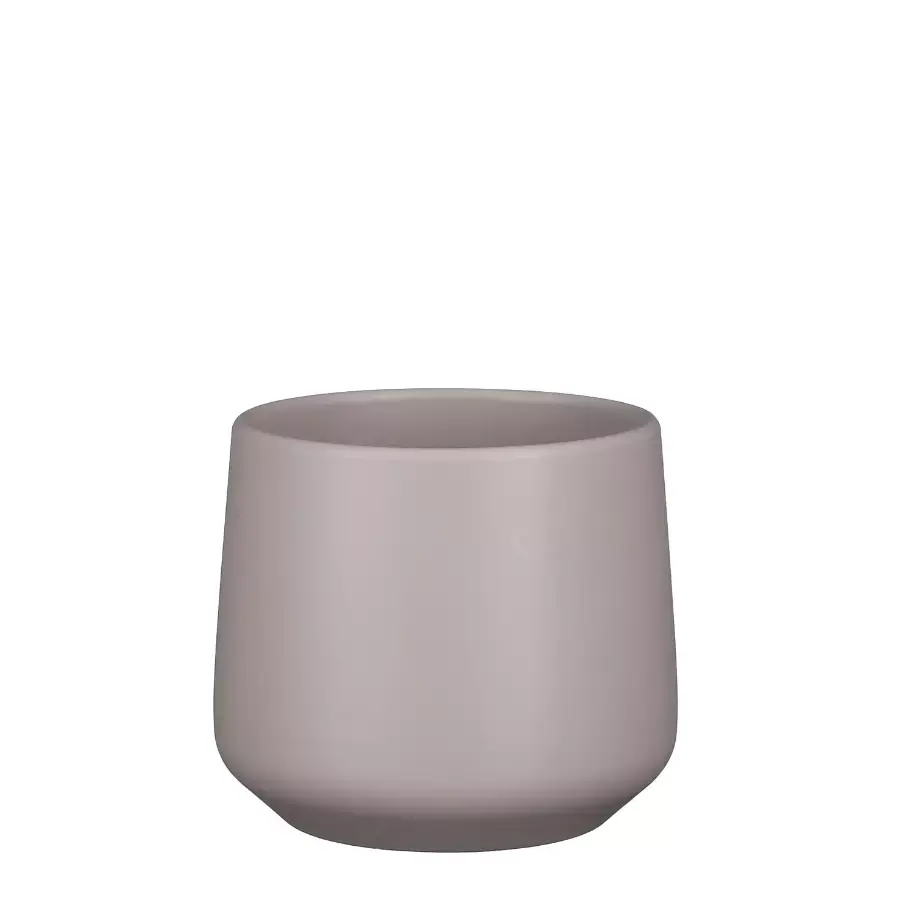 Moderne en stijlvolle bloempot van hoogwaardig keramiek met een taupe matte glazuur. Geschikt voor kleine tot middelgrote planten.