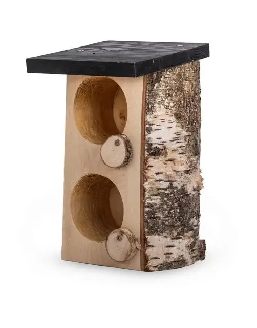 De Wildbird Quebec pindakaaspothouder, met zijn natuurlijke berk-look, biedt plaats aan 2 pindakaaspotten, waardoor vogels worden aangetrokken tot deze "boomstam" voor een smakelijke traktatie en mogelijk zelfs meerdere smaken. Het wordt aanbevolen om deze houder niet in direct zonlicht te hangen, maar eerder op een schaduwrijke plek dicht bij vegetatie, terwijl altijd een vrije zichtlijn behouden blijft om te kunnen genieten van de vogels in je tuin. Met afmetingen van 16x18x28 cm combineert deze pindakaaspothouder functionaliteit met een natuurlijke uitstraling, waardoor het een welkome toevoeging is aan elke tuin.