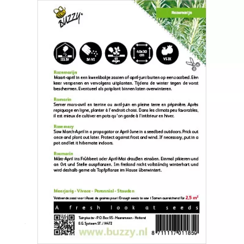 Buzzy Seeds is toegewijd aan het produceren van de beste zaden. De zaden zijn 100% natuurlijk en niet genetisch gemanipuleerd. Naast alle verplichte EU voorwaarden, moeten de zaden ook voldoen aan de eisen van Buzzy Seeds zelf. Hierdoor controleren zij eigenhandig de zaden in het laboratorium en de proefvelden, waardoor de producten van aanzienlijke waarde worden aangeboden. Bekijk hier het assortiment van Buzzy Seeds bij Toptuincentrum.