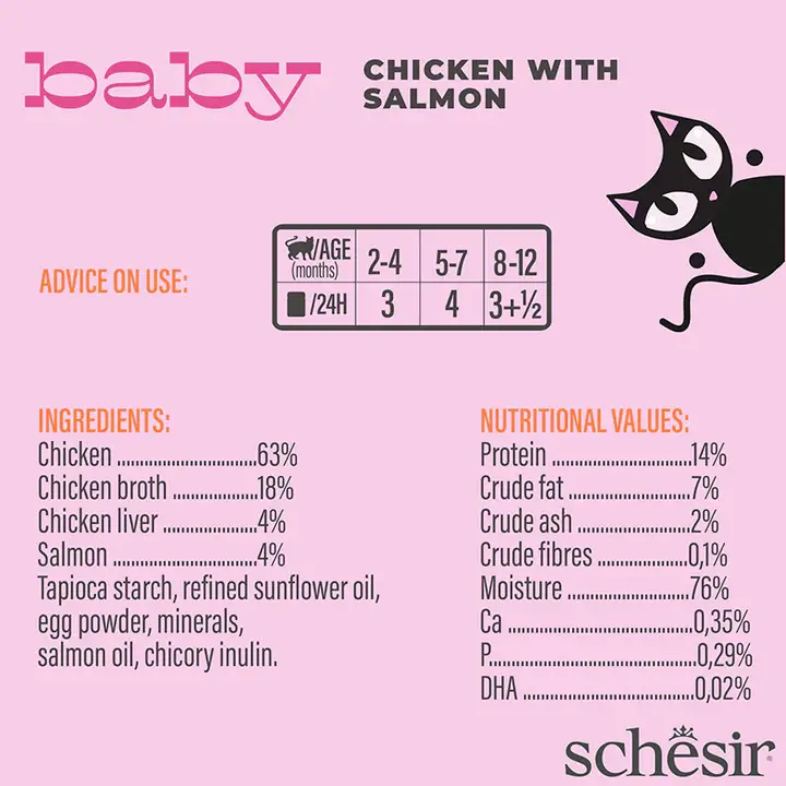 Schrijf zelf een recensie over "Schesir baby kip en zalm bouillon 70g"