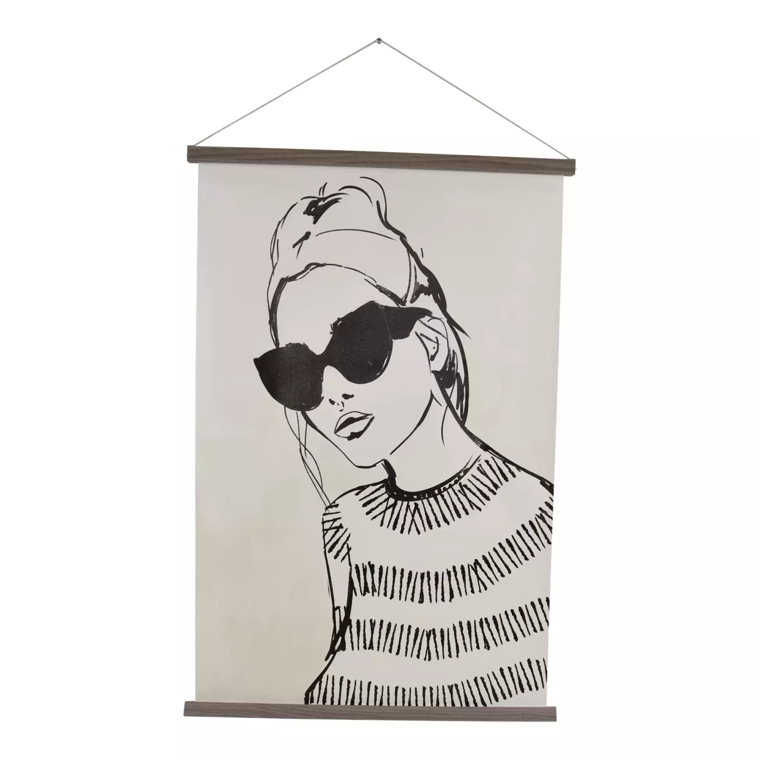 Dit schilderij is geschikt voor verschillende woonstijlen, deze fashion tekening is een designer item voor in je huis. Dit soort schilderijen worden ook wel kakemono genoemd, het is een Japanse hangrol ze zijn op dit moment een echte trend en terug te vinden in verschillende woonbladen.