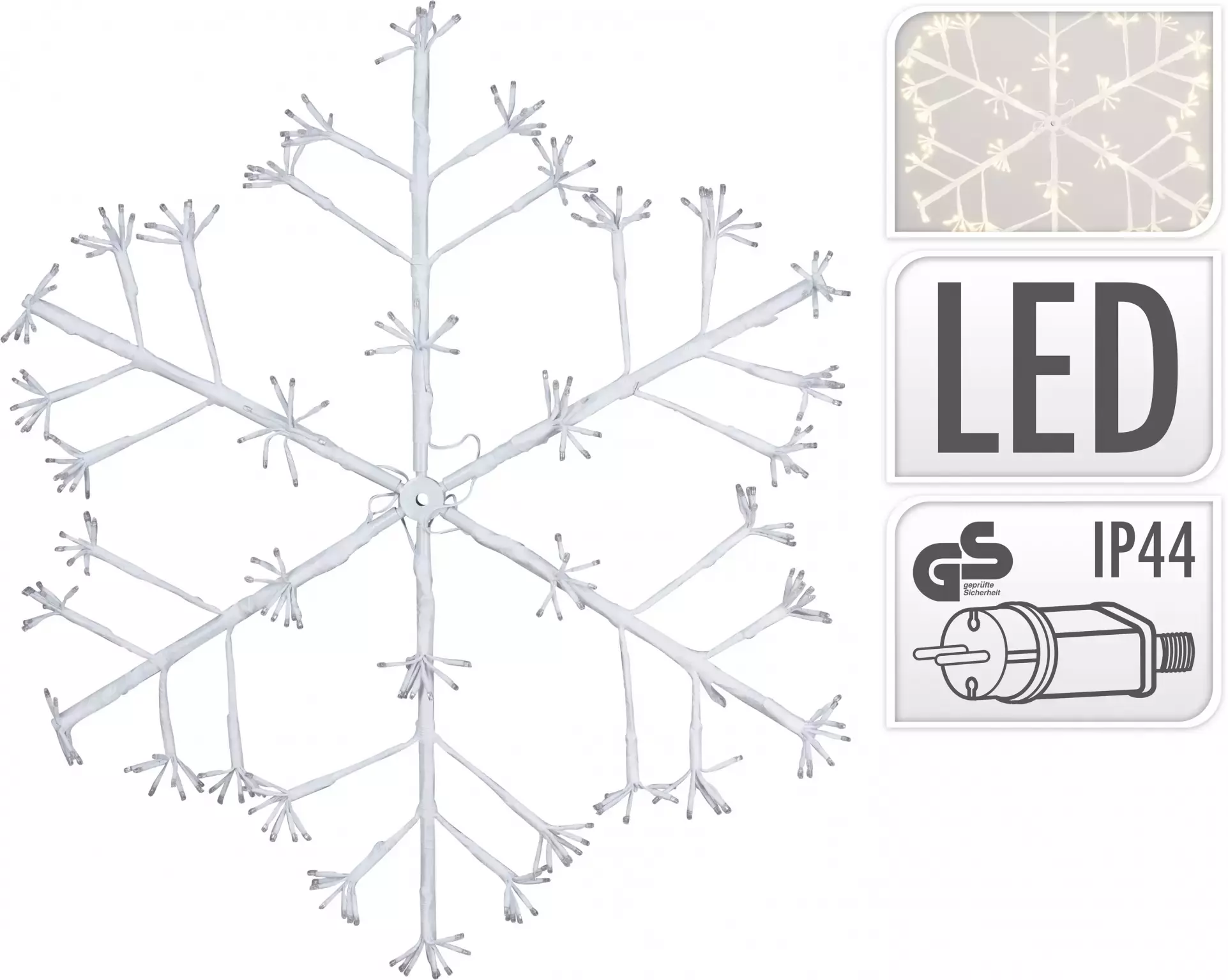 De LED sneeuwvlok van 80 cm met 288 warm witte lampjes is een prachtige en veelzijdige kerstdecoratie, perfect voor het toevoegen van een feestelijke uitstraling aan zowel binnen- als buitenshuis.