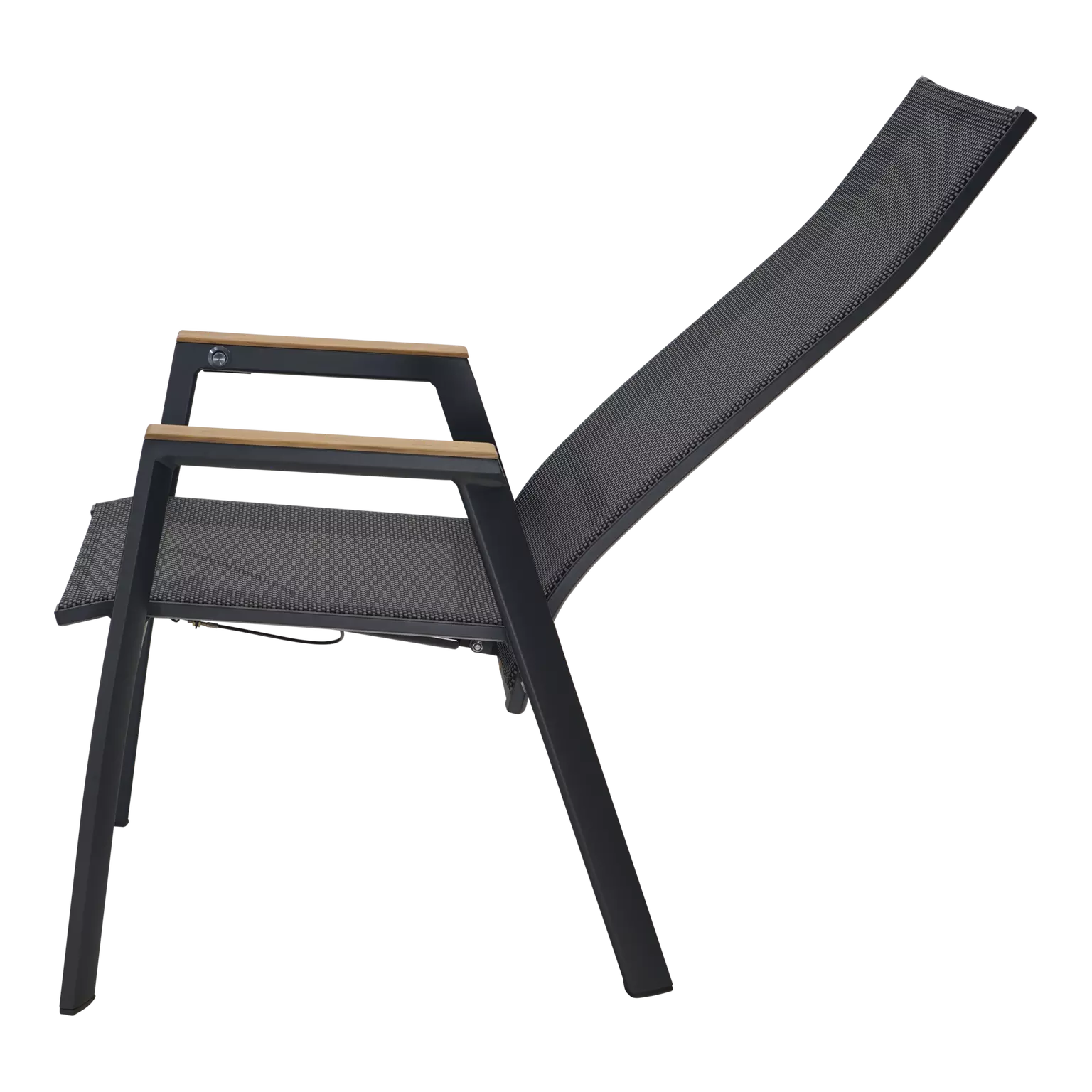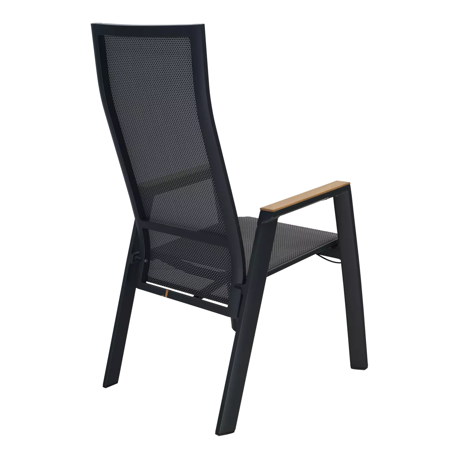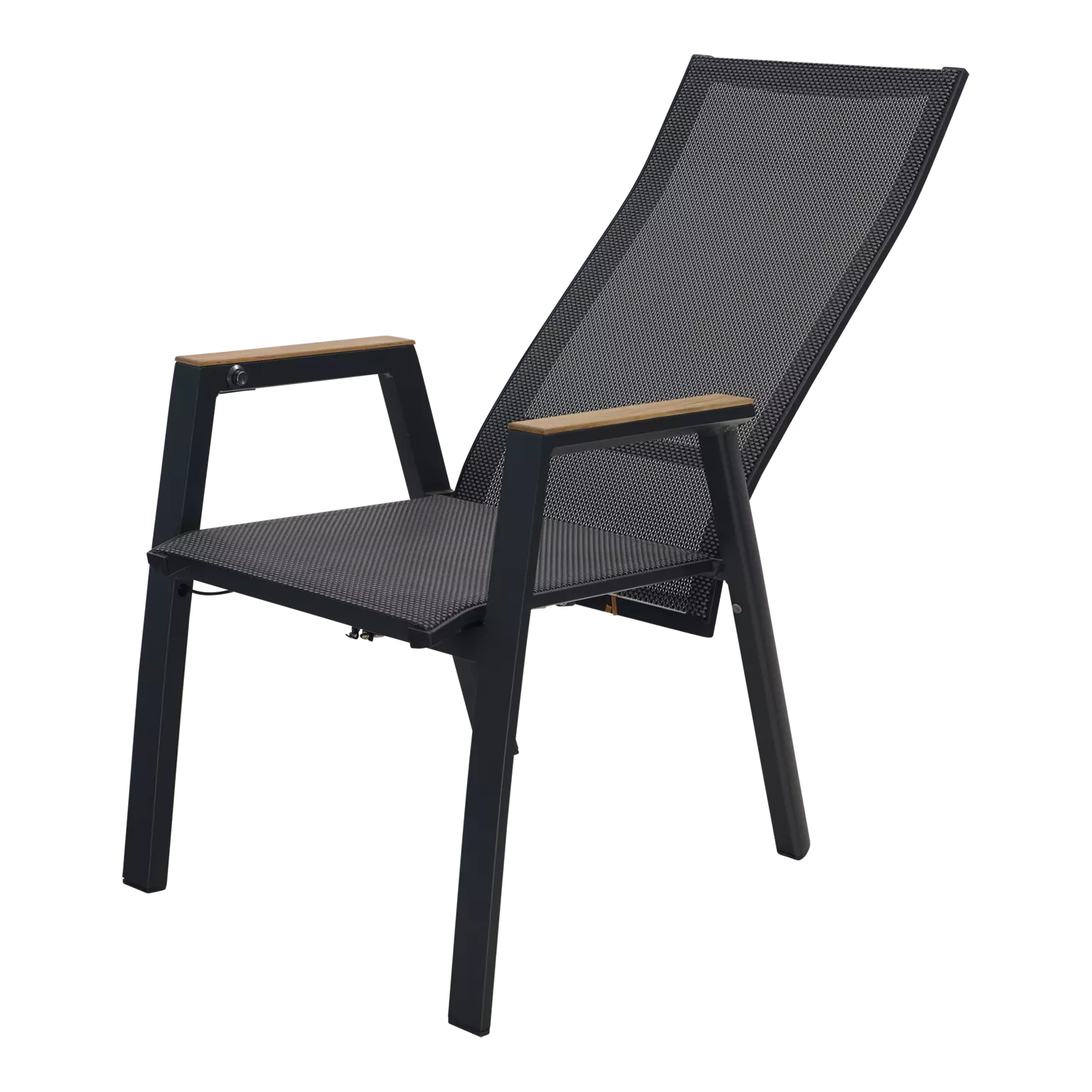 De Amir Teak Negro is uitgerust met een verstelbare rugleuning, zodat je altijd de perfecte zithouding kunt vinden. Of je nu wilt ontspannen met een goed boek of genieten van de zon, deze stoel biedt je de flexibiliteit om de rugleuning aan te passen aan jouw wensen.