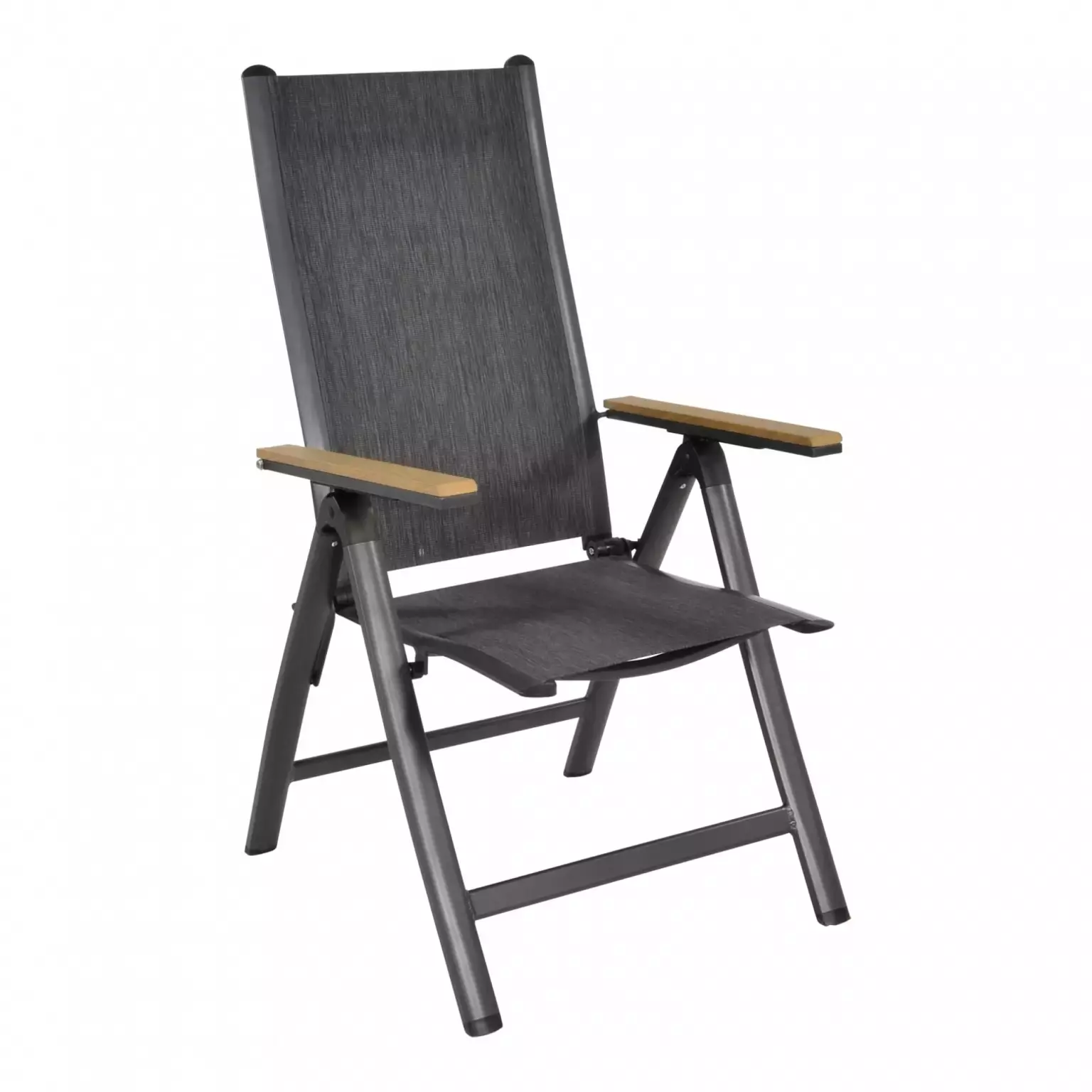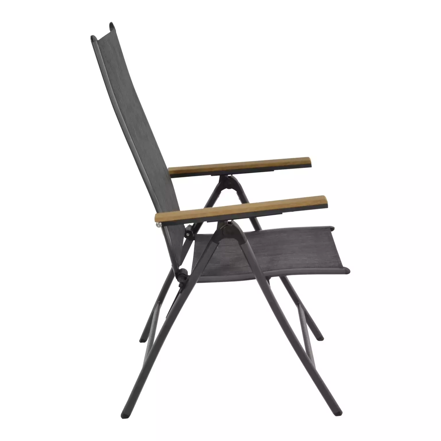 - Met een verstelbare rugleuning biedt deze stoel aanpasbaar comfort, ideaal voor verschillende zitposities tijdens ontspanning buitenshuis.