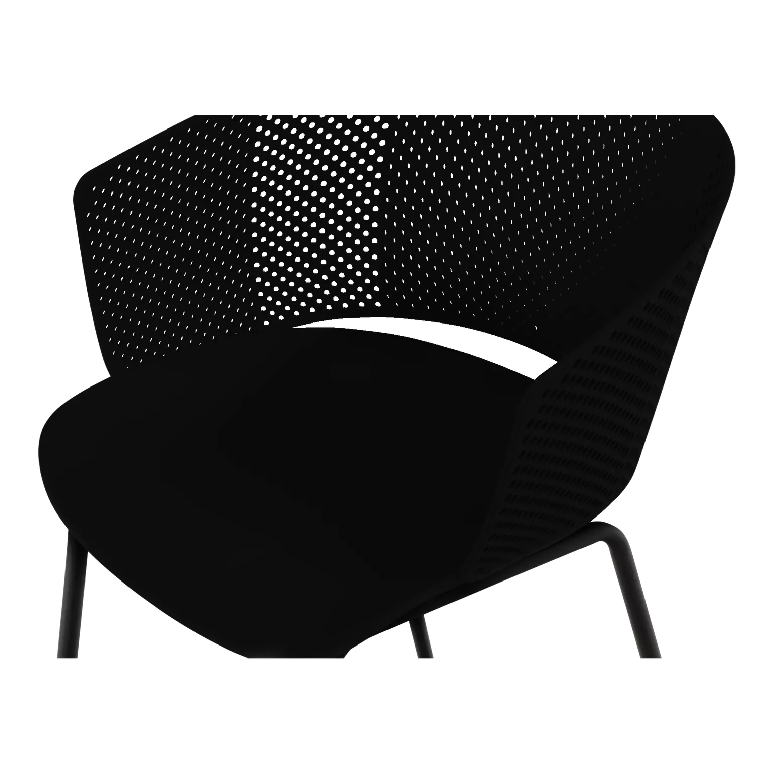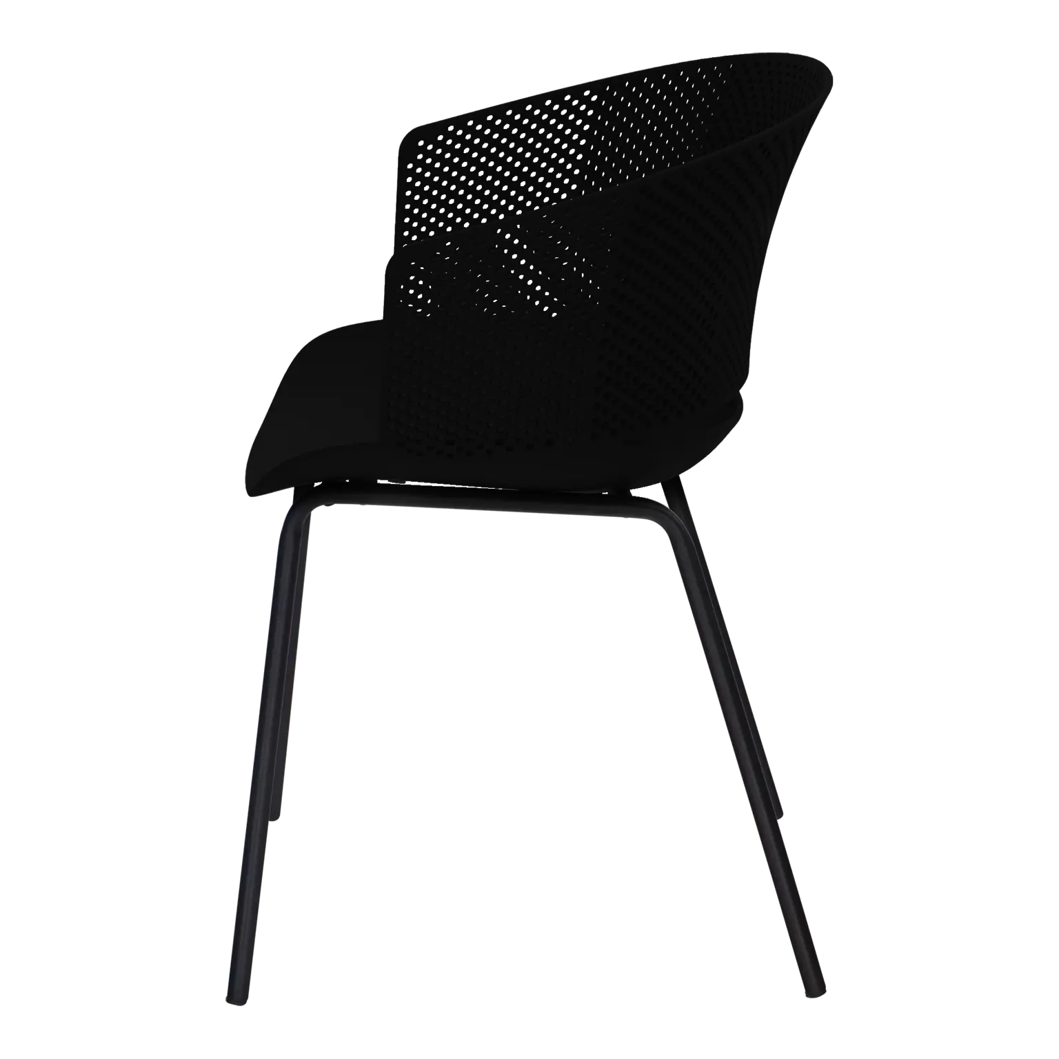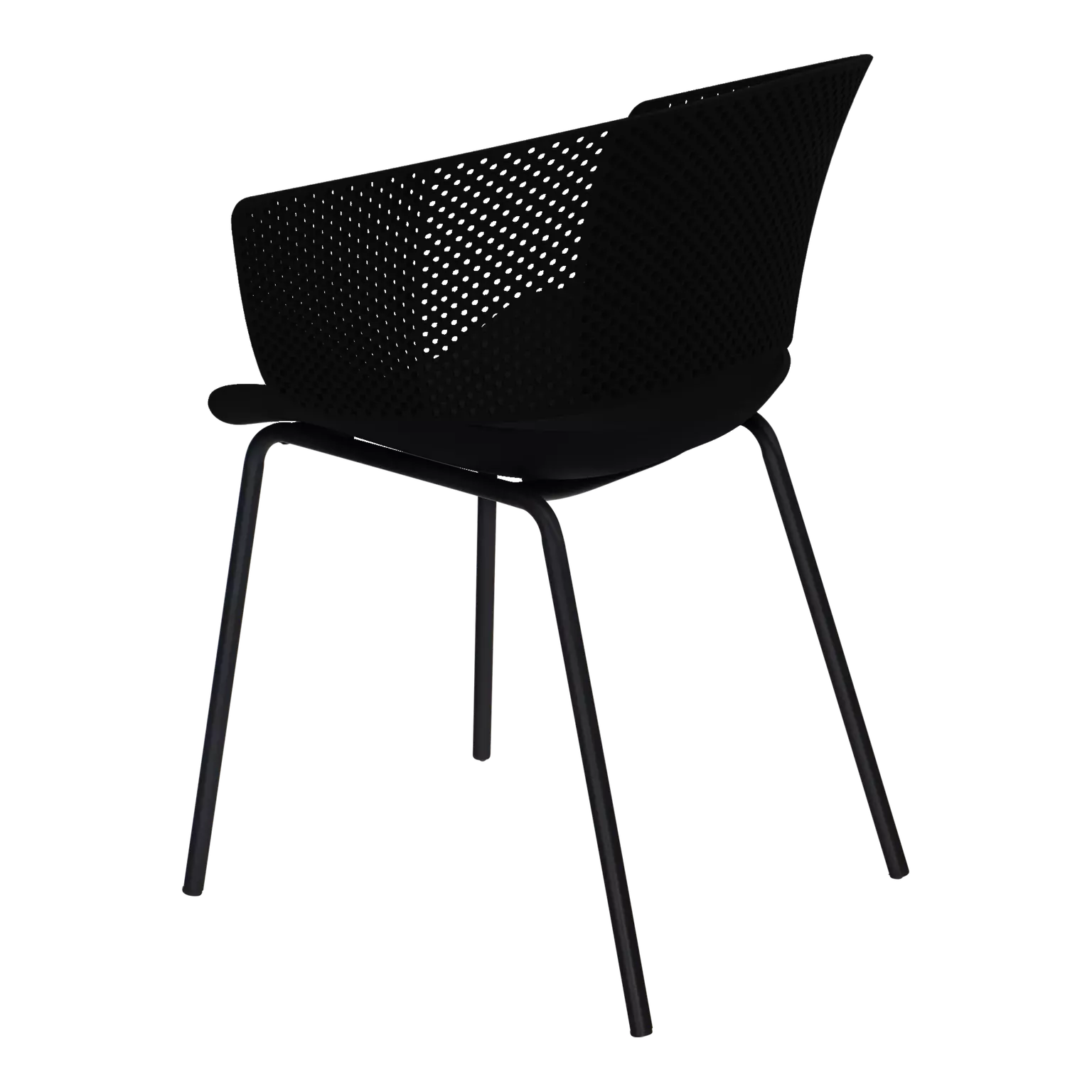 Met zijn stevige stalen onderstel en polypropyleen armleuningen biedt de stoel Lille Zwart niet alleen duurzaamheid maar ook een moderne uitstraling in de tijdloze kleur zwart. De stoel meet 58,5 cm in lengte, 45,5 cm in breedte en 79 cm in hoogte, met een comfortabele zithoogte van 44 cm en een zitdiepte van 40 cm, wat hem geschikt maakt voor verschillende lichaamstypes en zitvoorkeuren.