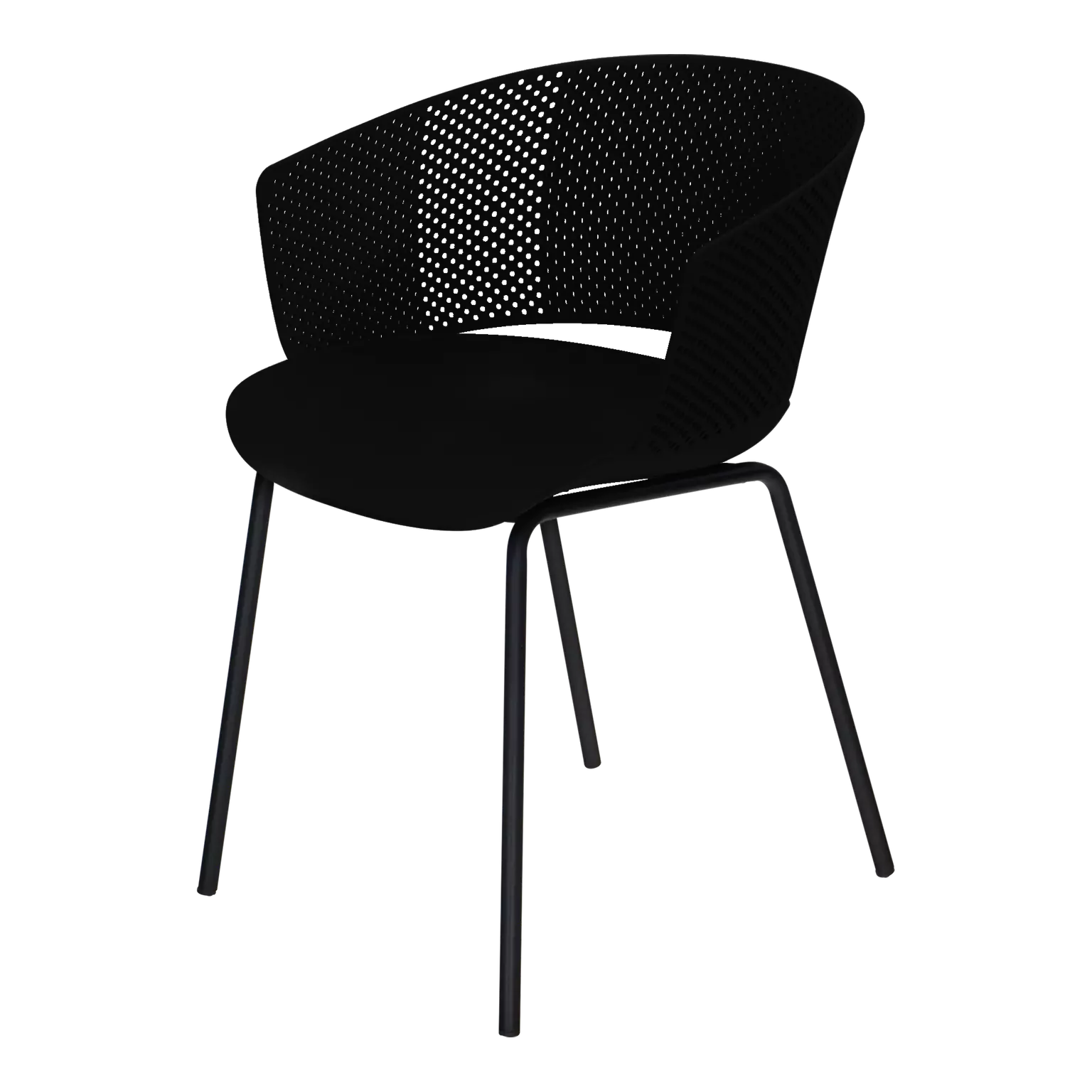Ontdek de veelzijdige stoel Lille Zwart, ontworpen voor comfortabele zitervaringen met een moderne twist. Deze stoel combineert een eigentijds ontwerp met praktische eigenschappen, waardoor hij ideaal is voor verschillende omgevingen, van eetkamers tot kantoren en commerciële ruimtes.
