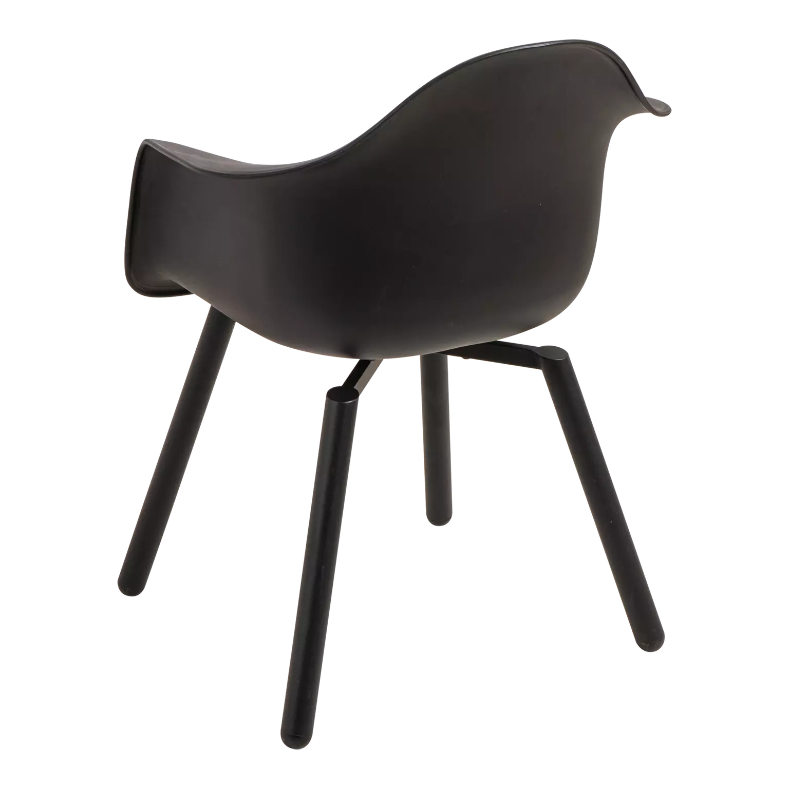 De Montreux stoel is vervaardigd uit hoogwaardig polypropyleen, een materiaal dat bekend staat om zijn duurzaamheid en onderhoudsgemak. De volledige zwarte kleur, inclusief de poten, geeft de stoel een stijlvolle en minimalistische uitstraling die moeiteloos past bij verschillende interieurstijlen, van modern tot industrieel.