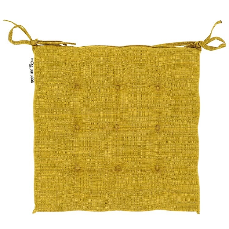 Maak je buitenplek klaar voor de zomer met de Senna outdoor chairpad. Dit vierkante stoelkussen in de kleur geel is de ideale manier om je tuinmeubilair op te fleuren en tegelijkertijd te voorzien van een comfortabele zitting. Met een formaat van 40 x 40 x 3 cm is deze chairpad uiterst veelzijdig en past hij perfect op diverse soorten stoelen.