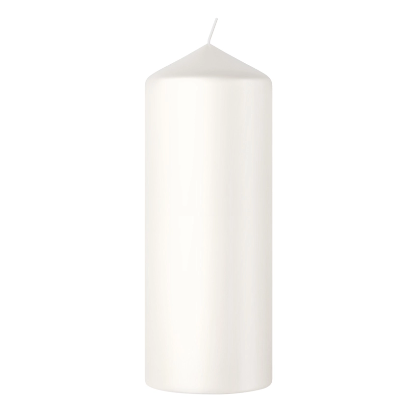 Een stompkaars met een diameter van 5,8 centimeter en een hoogte van 15 centimeter, uitgevoerd in een zachte en serene wolkachtig witte kleur.