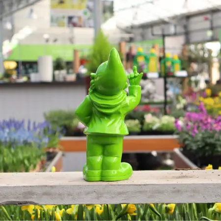 De Stoobz kabouter f*ck you lime 20cm is een echte blikvanger, voeg met dit tuinbeeld een goede dosis kleur en humor toe aan je tuin.
