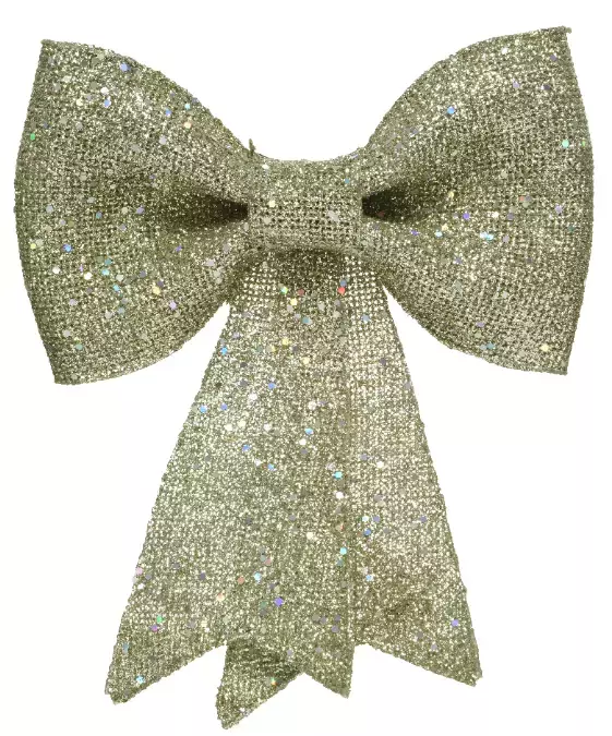 Deze gouden kerststrik is bedekt met glitters waardoor het een glanzende kerst wordt. Deze strik kan gebruikt worden als decoratie in de kerstboom of om cadeaus mee te versieren.