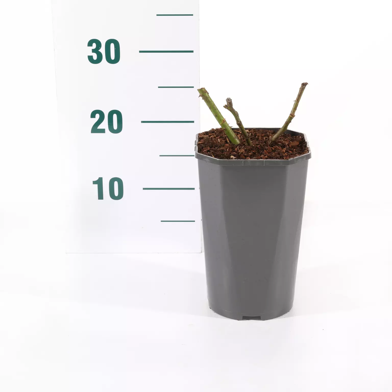 Plant je roos in een ruim gat in de volle grond en vul dit gedeeltelijk op met rozenpotgrond, vul de rest aan met aarde en druk stevig aan.
