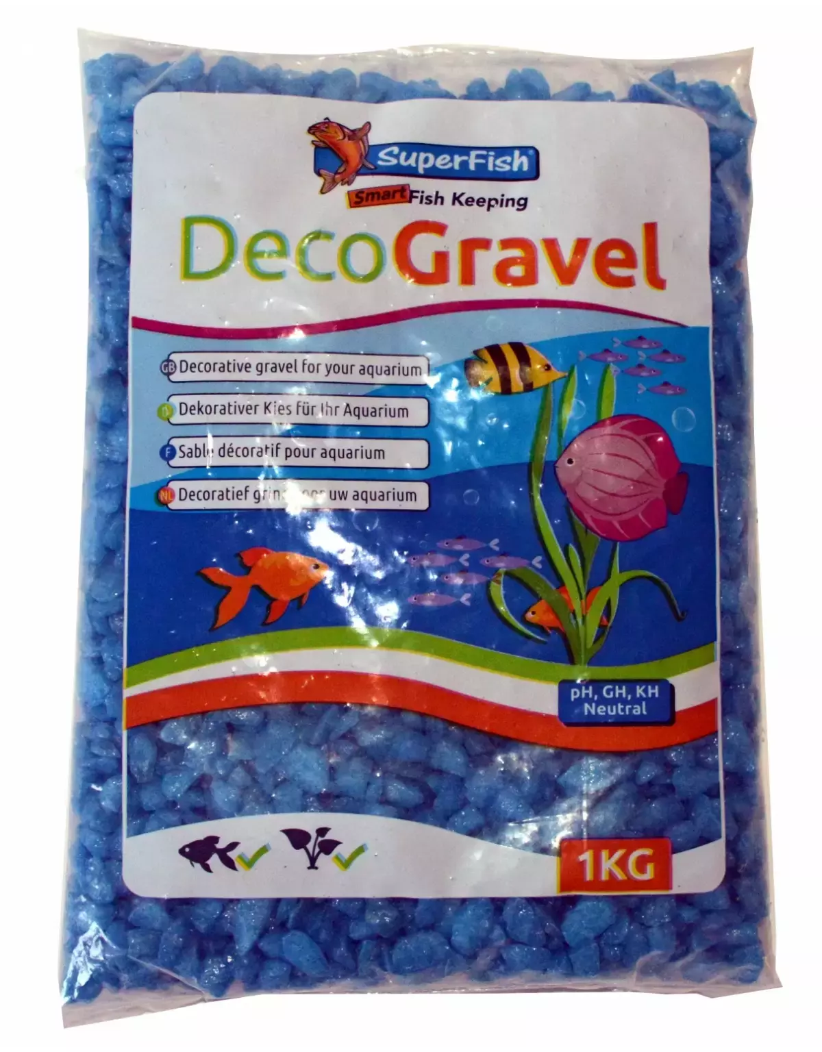 Zeer kleurrijk decoratief grind in 1 klio verpakking voor kleine aquaria. Het grind is 100% veilig voor de vissen en planten.