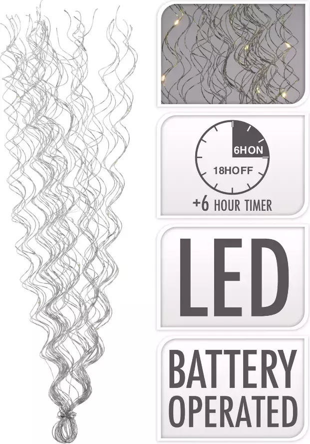 Deze mooie zilveren kerst tak is 60 cm groot, dat zorgt dus voor een mooi lichtspektakel bij jou thuis! Door de timer van 6 uur hoef je eigenlijk niets meer te doen, stekker erin en klaar!