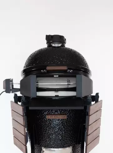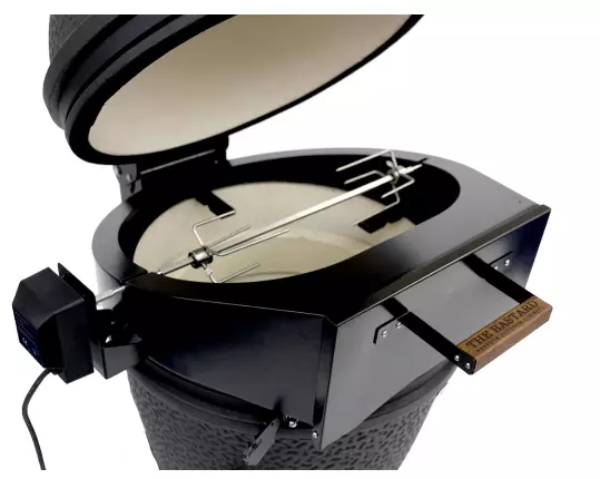 Laat je verrassen door de unieke smaaksensatie van The Bastard Pizza – Rotisserie Medium Pizza. De heerlijke ingrediënten geven de pizza een speciale smaak en eetplezier. Te gebruiken als rotisserie én als pizza oven. Door de handige deur aan de voorkant blijft de dome gesloten waardoor je het vuur op kan stoken en de warmte goed vasthoudt. De rotisserie oven wordt geleverd met een dikke pizzasteen op maat. Daarmee is het de ideale pizza accessoire voor jouw Bastard. Het demontabele draaispit heeft een sterke motor en grote klauwen. Geschikt voor Large toestellen van 2019 tot heden.