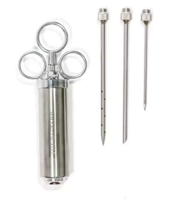 Een goede smaakcombinatie moet het lekkerste vlees opleveren. Met deze injector set kan je lekker gaan experimenteren om opzoek te gaan naar de allerbeste smaakcombinaties. De mogelijkheden zijn eindeloos. Wat te denken van bijvoorbeeld appelsap of honing. Overdrijf het alleen niet! Je vlees moet natuurlijk wel naar vlees blijven smaken en niet naar appelsap of honing. Steek de naald schuin in het vlees en pers de vloeistof naar keuze er langzaam in terwijl je de spuit terugtrekt. Probeer in hetzelfde gat in meerdere richtingen te injecteren. Een stuk vlees vol met gaten ziet er natuurlijk niet mooi uit!