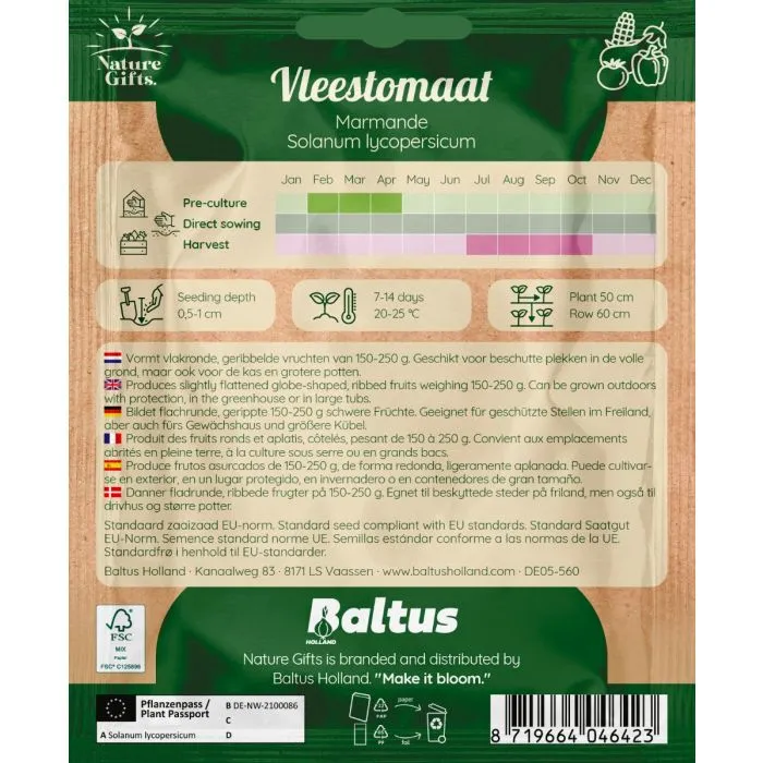 De Tomaat 'Marmande'is een vlakronde, geribbelde tomaat van 150-250g. Een authentieke vleestomaat die geschikt is voor beschutte plekken.