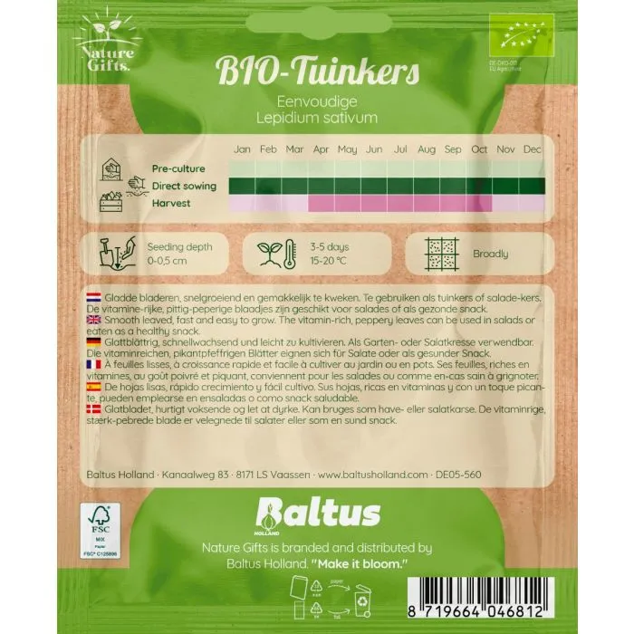 Biologische tuinkers is een snelgroeiend, fris pittig en vitaminerijk kruid. Ideaal als smaakmaker in diverse gerechten en salades.