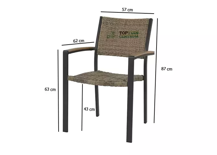 Zoek je een moderne stapelstoel? Dan is de Arezzo stapelstoel met wicker afwerking ideaal voor jou! Het lichte aluminium frame maakt de stoel eenvoudig te verplaatsen en de polywood armleuningen bieden extra comfort. De stapelbare functie maakt de Arezzo stoel praktisch in gebruik, en hij is ook verkrijgbaar met textileen bekleding.