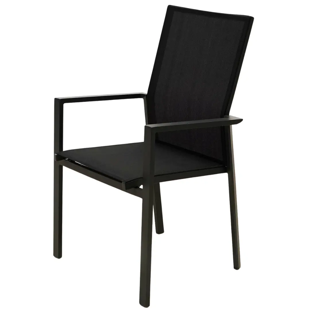 Schrijf zelf een recensie over "Tuinstoel Delia hoge rug alu text. zwart stapelbaar"