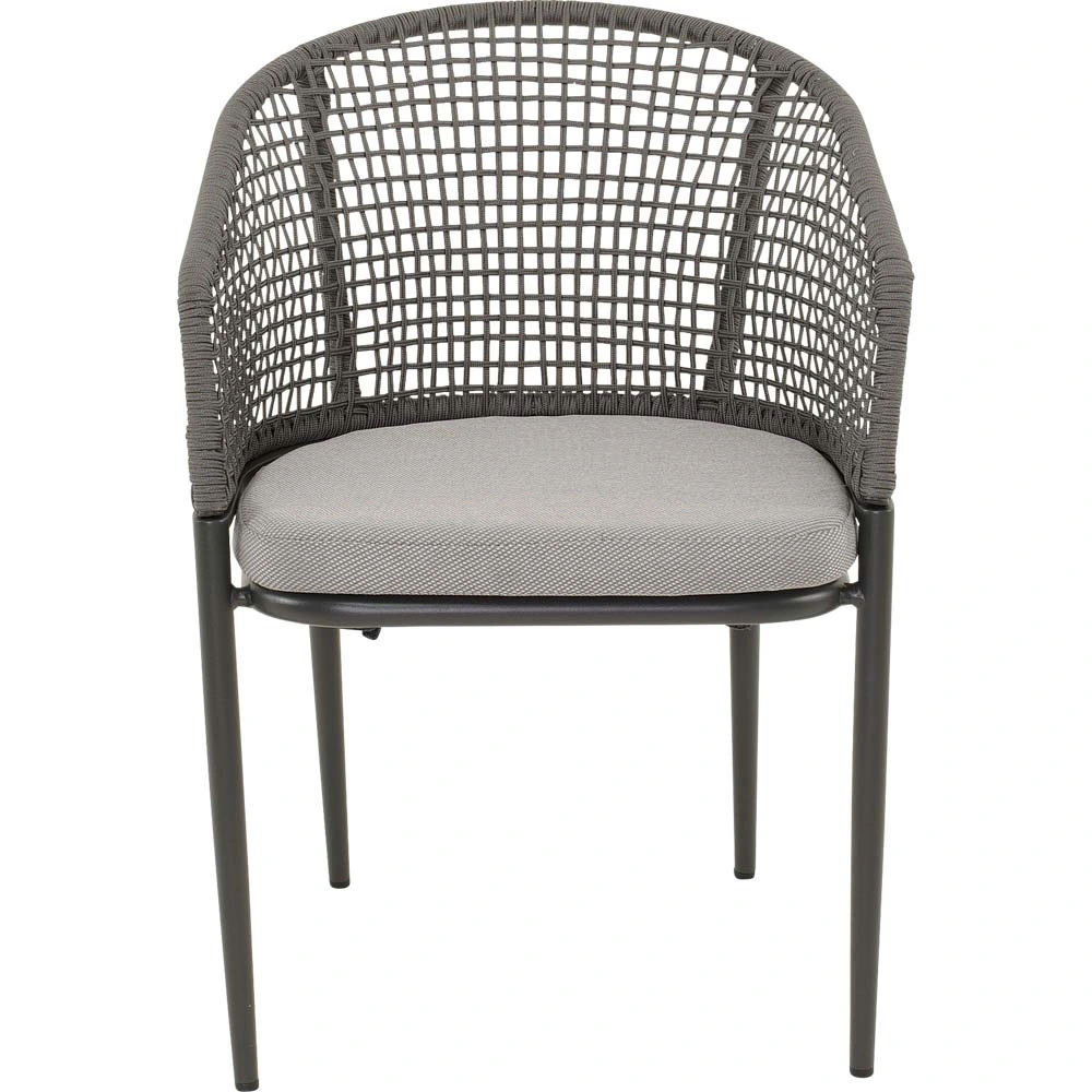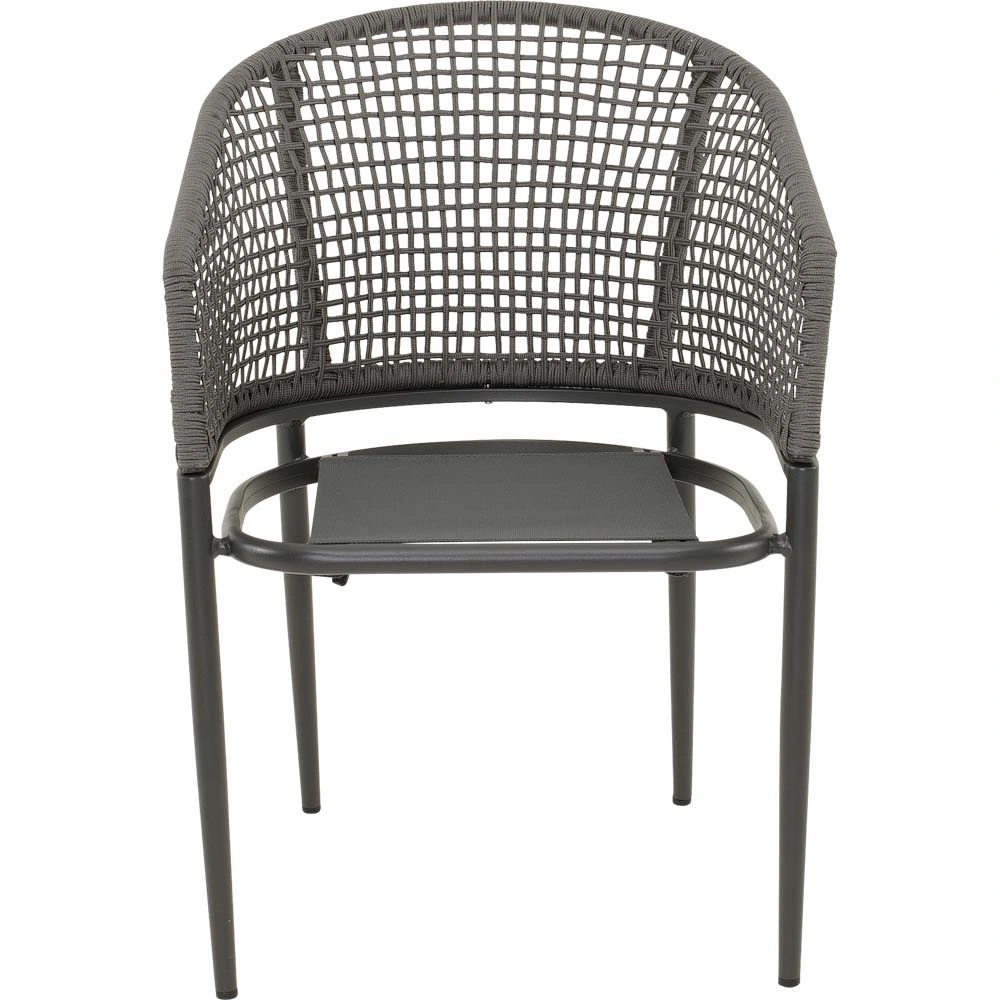 De Stoel Kioto in grijs combineert modern design met comfortabel zitgemak en duurzame materialen. Dankzij het strakke aluminium frame in mat antraciet en het stijlvolle rope-design in donkergrijs past deze stoel moeiteloos in jouw eigentijdse tuin, terras of balkon.