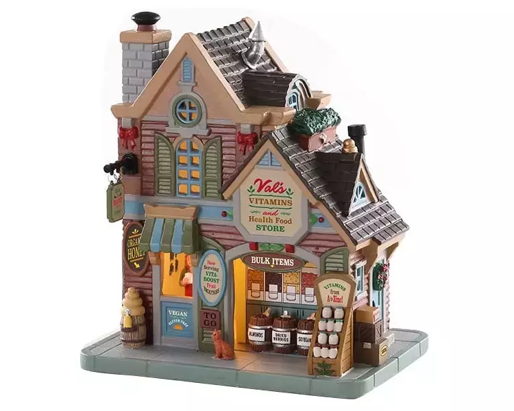 Lemax V vitam health food is een prachtig item om je Lemax kerstdorp mee uit te breiden! Het heeft een warme, gezellige uitstraling en brengt de ultieme kerstsfeer naar boven. V vitam health food is uitgevoerd in een uitstekende Lemax kwaliteit. Je kunt Lemax V vitam health food gemakkelijk bestellen via onze website www.toptuincentrum.nl, we hebben een uitgebreid Lemax assortiment. Ben jij op zoek naar een passend huisje? Dat is bij ons geen probleem want wij hebben voor elk Lemax kerstdorp een passend Lemax huisje.