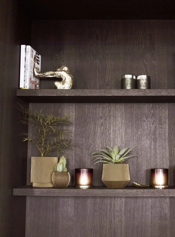 De vaas cilinder groove d23h25 zwart/goud is een stijlvolle en moderne vaas van hoogwaardig kunststof met een matte zwarte afwerking en gouden accenten. De vaas heeft een cilindervorm met groeven aan de buitenkant die doen denken aan de natuurlijke textuur van steen en rots.
