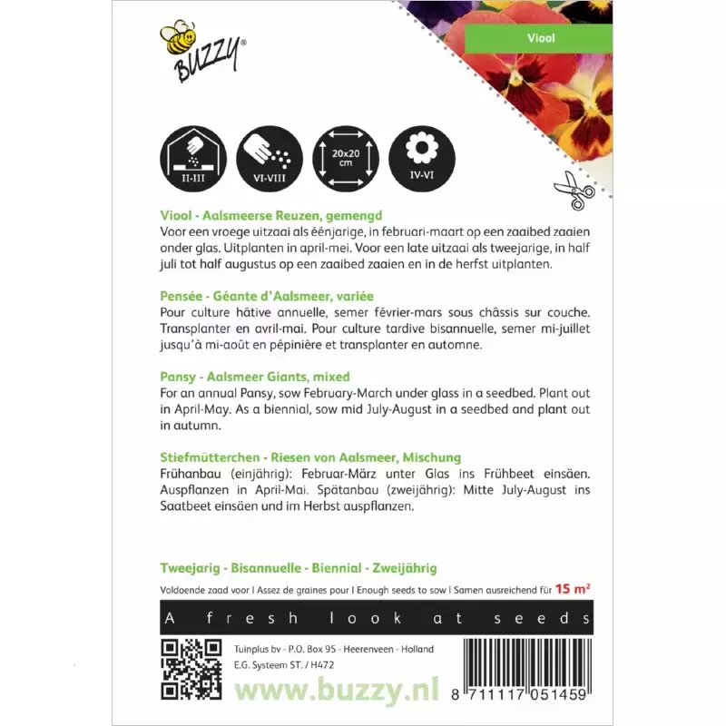 Buzzy Seeds is toegewijd aan het produceren van de beste zaden. De zaden zijn 100% natuurlijk en niet genetisch gemanipuleerd. Naast alle verplichte EU voorwaarden, moeten de zaden ook voldoen aan de eisen van Buzzy Seeds zelf. Hierdoor controleren zij eigenhandig de zaden in het laboratorium en de proefvelden, waardoor de producten van aanzienlijke waarde worden aangeboden. Bekijk hier het assortiment van Buzzy Seeds bij Toptuincentrum.