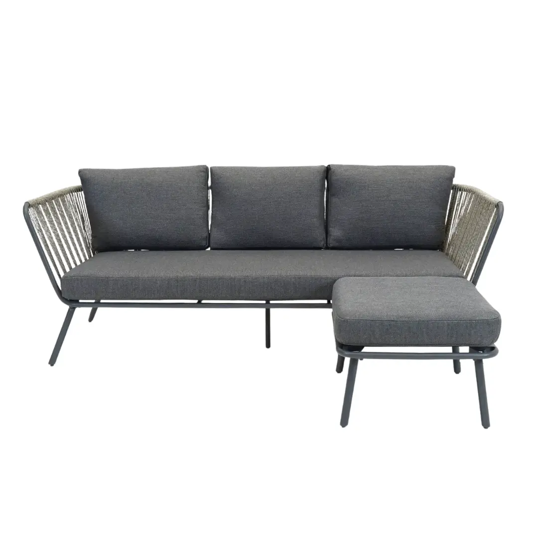 Vita Loungeset Wicker Corfu – Driezitsbank met voetenbank en kussens voor tuin of balkon
