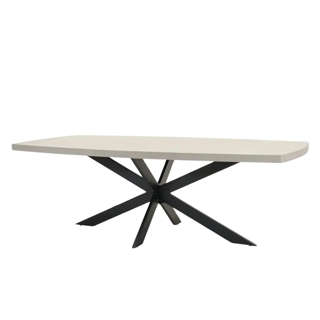 Geef je tuin of terras een moderne en luxe uitstraling met de Tuintafel Salo 240x100 cm. Deze royale tuintafel combineert een robuust polystone tafelblad met steenlook en een strak zwart metalen onderstel. Dankzij het tweemaal X-frame geniet je van optimale stabiliteit én veel beenruimte, zonder hinderlijke tafelpoten in de weg.