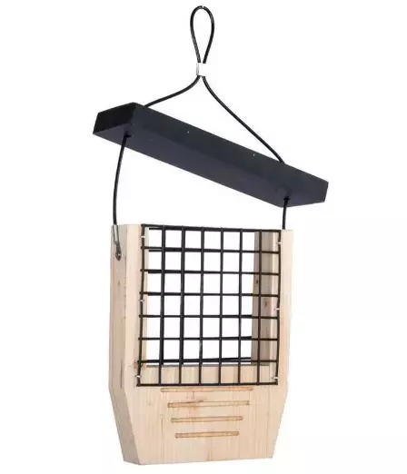 De vetblokhouder Silkeborg voor onder andere spechten heeft speciale ribbels voor een goede grip van de pootjes en ruimte voor hun staart. Lengte 20cm - Breedte 7.5cm - Hoogte 35cm