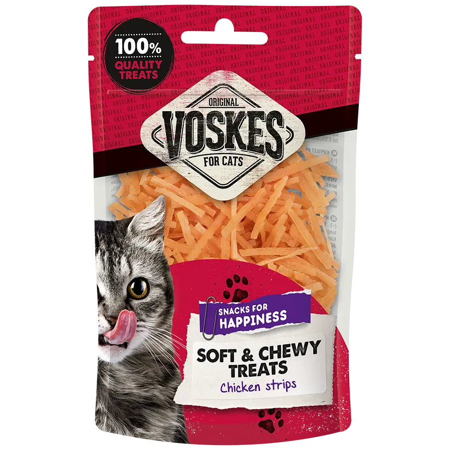 De Voskes Kipfilet Reepjes zijn de ideale manier om je kat te verwennen met een gezonde en smakelijke traktatie. Perfect voor dagelijks gebruik of als speciale beloning!