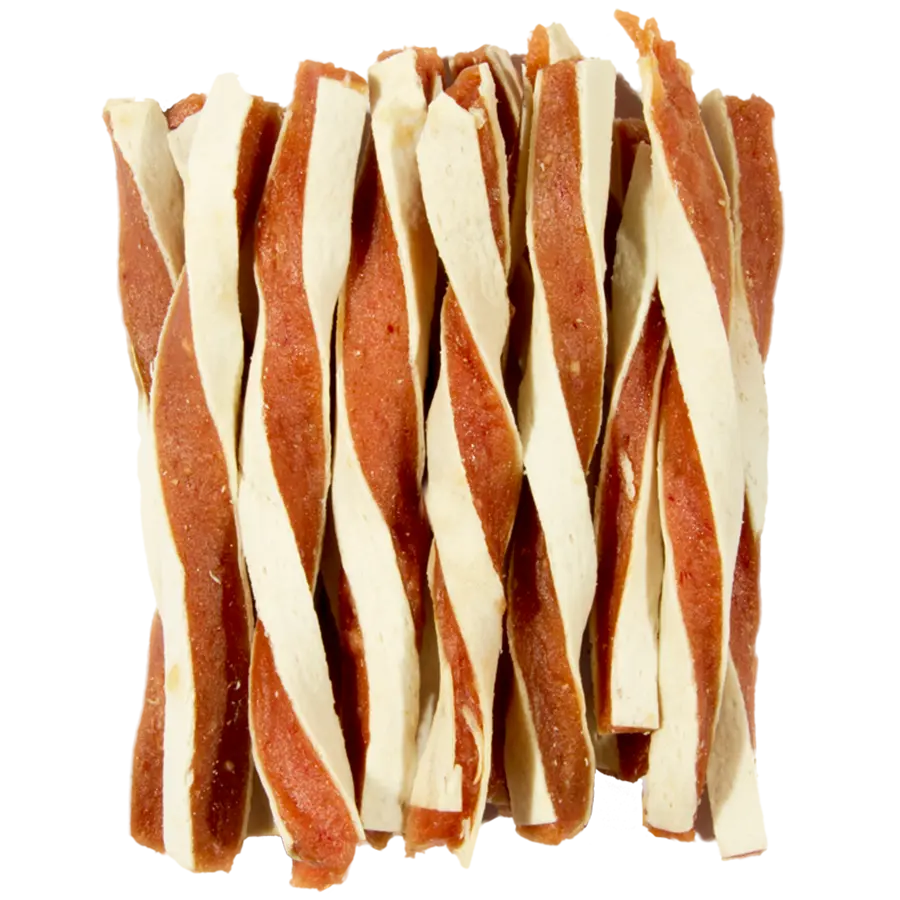 De Kip-Vis Twist is een smaakvolle hondensnack die je hond zeker zal waarderen. De heerlijke combinatie van kip en vis zorgt voor een onweerstaanbare delicatesse die zelfs de kieskeurigste viervoeter zal bekoren. Deze snack is niet alleen lekker, maar door de speciale vorm draagt hij ook bij aan de mondhygiëne van je hond, door tandplak te helpen verminderen.