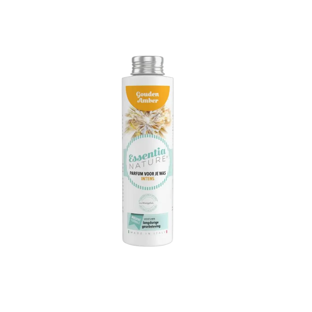 Omhul je kleding en linnengoed met de rijke, elegante geur van Gouden Amber Intens. Deze wasparfum combineert warmte, diepte en verfijning: een sprankelende opening van sinaasappel, een zacht hart van jasmijn en tonkaboon, en een volle, omhullende basis van amberhout, vanille, witte musk en sandelhout.