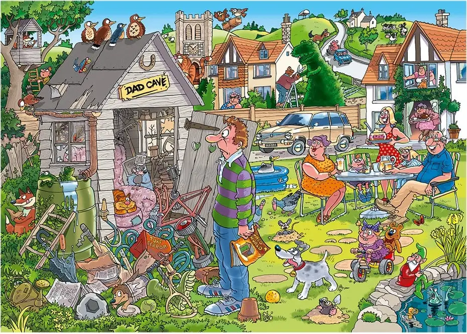Beleef uren puzzelplezier met de Wasgij Destiny 28 "De Mancave van Pa!" puzzel. Deze 1000-stukjes puzzel biedt een hilarisch en verrassend ontwerp, perfect voor puzzelfans die houden van een uitdaging en een flinke dosis humor!