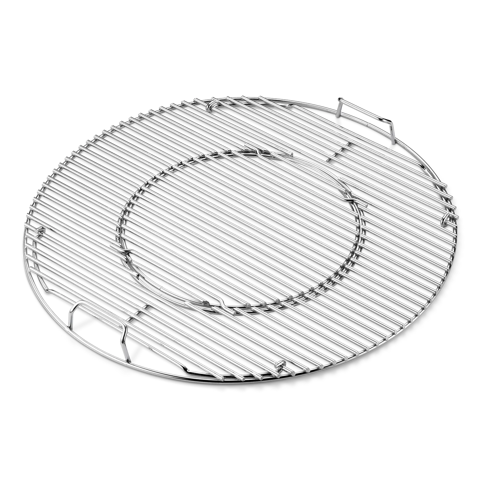 Het Weber Gourmet BBQ System Grillrooster is een innovatief rooster ontworpen voor 56cm Weber® houtskoolbarbecues, zoals de Weber Original Kettle Premium. Dit rooster maakt deel uit van het Gourmet BBQ System en biedt een veelzijdige en flexibele kookervaring.