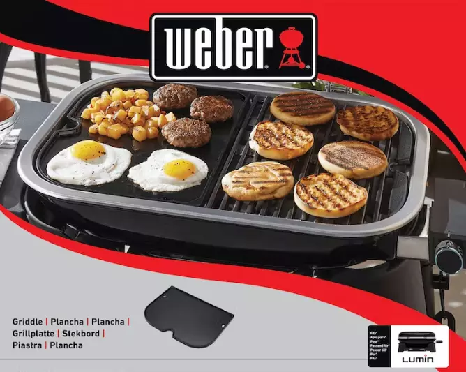 Waarom kies je voor een Weber barbecue bakplaat? Met een Weber barbecue bakplaat ben je verzekerd van een perfecte en smakelijke bereiding van je gerechten. De Weber Lumin bakplaat is voorzien van Weber's speciale coating. Dankzij deze warmtewerende coating die de bakplaat heeft, wordt de hoofdbereiding bovendien perfect en wordt er niet alleen een smakelijke maar ook een gezonde maaltijd bereid. De Weber Lumin barbecue bakplaat is vervaardigd van een sterk materiaal dat bestand is tegen extreme hitte. Hierdoor is de bakplaat gegarandeerd lang in je bezit. Met het anti-aanbaklaagje wordt zelfs de meest kleverige maaltijden makkelijk klaargemaakt. Maak de beste pannenkoeken, eieren en hamburgers met de Weber Lumin barbecue bakplaat. Geniet van heerlijke smaak en een perfecte bereiding. Word er nu eigenaar van een Weber barbecue bakplaat en geniet van de perfecte barbecue!