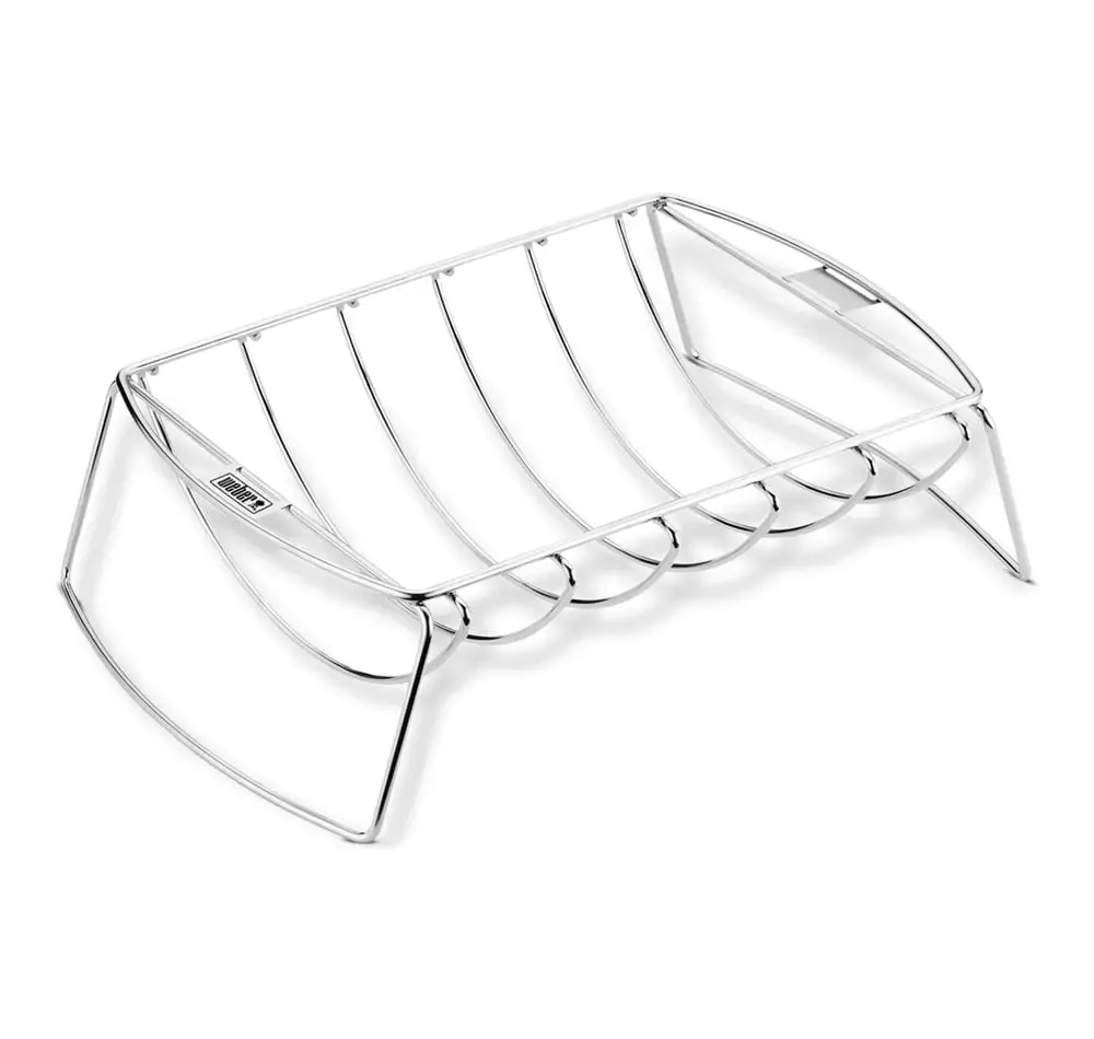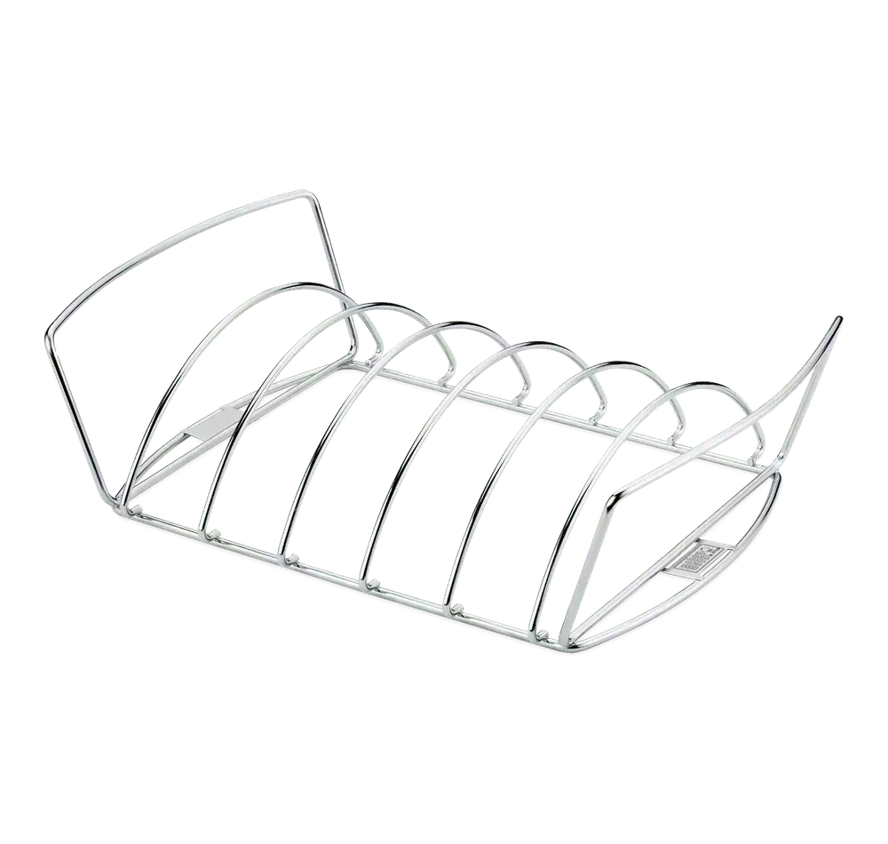 Mals vlees dat zo van het bot valt. Verrukkelijke braadstukken met een heerlijke smaak die je alleen krijgt door de rook onder het deksel van de barbecue. Het twee-in-één ontwerp van de Premium Vleeshouder is geschikt voor meerdere spareribs zodat u meer ruimte op uw grillrooster krijgt. Het kan ook worden gebruikt als een stevige korf voor sappige braadstukken.