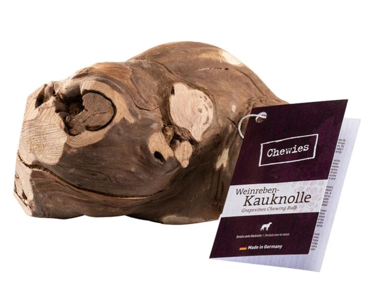 De CHEWIES kouwbol is de perfecte kauwsnack voor uw hond. De kauwbol is gemaakt van regionale wijnstokken uit Duitse wijnstreken en perfect voor lang kauwplezier. Barsten in het hout zorgen voor aantrekkelijke prikkels om te knabbelen, zodat uw hond de wijnstok geleidelijk aan versnippert. De zacht gekauwde stukken hout zijn bij inslikken niet gevaarlijk.