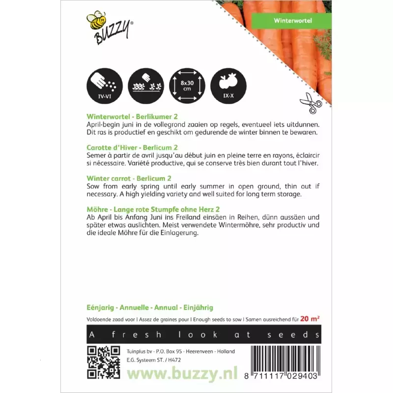 Winterwortel - Berlikumer 2_x005F_x000D_ April-begin juni in de vollegrond zaaien op regels, eventueel iets uitdunnen._x005F_x000D_ Dit ras is productief en geschikt om gedurende de winter binnen te bewaren.
