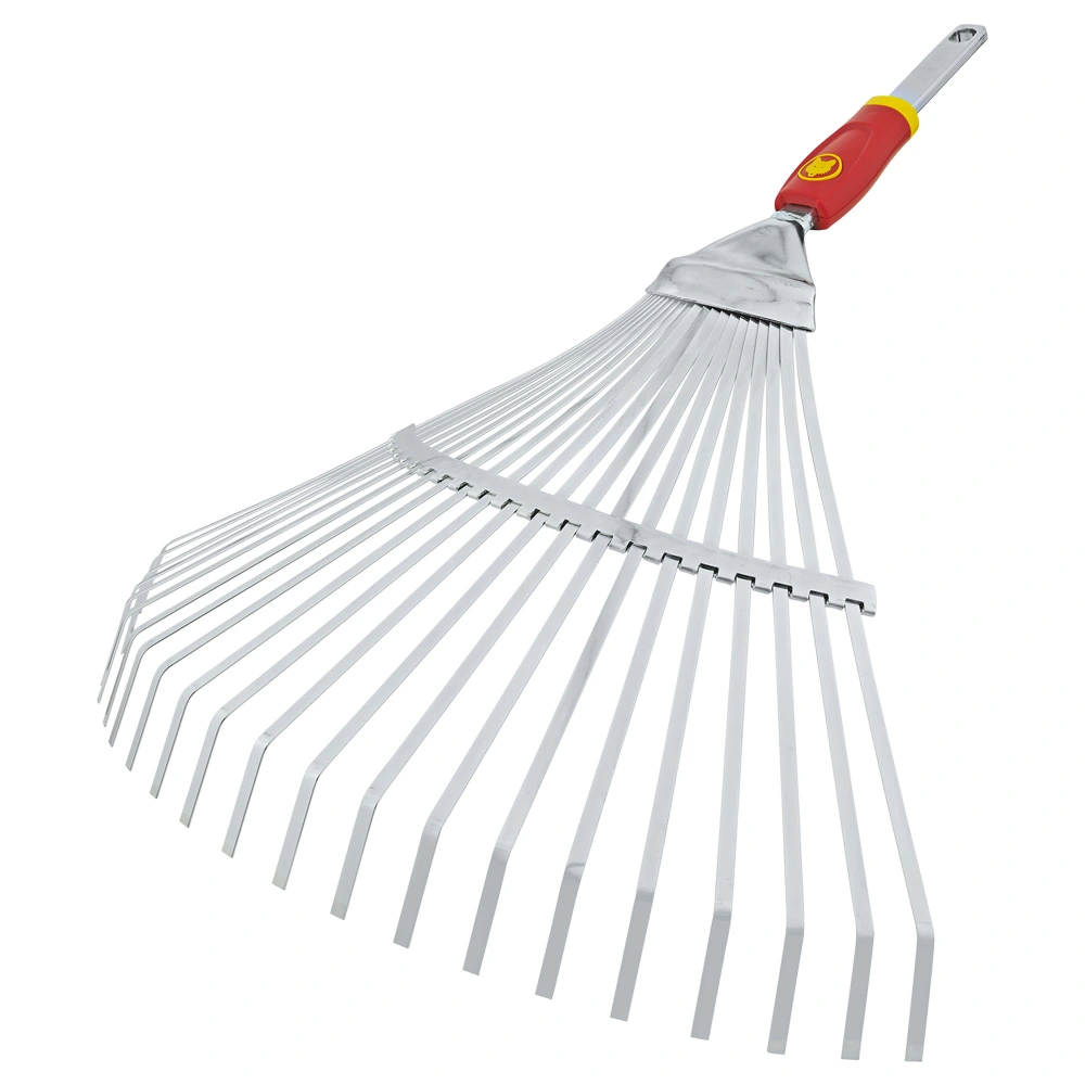 De Wolf-Garten Bladhark UE-M (50 cm) maakt efficiënt schoon op paden en harde ondergronden, dankzij duurzaam flexibel gehard staal en compatibiliteit met ZM stelen voor comfortabel gebruik.
