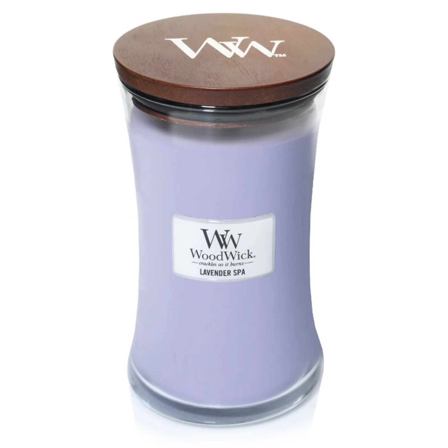 WoodWick Large candle Lavender Spa. Maar liefst minimaal 130 uur van de heerlijke geur Lavender Spa in je huis