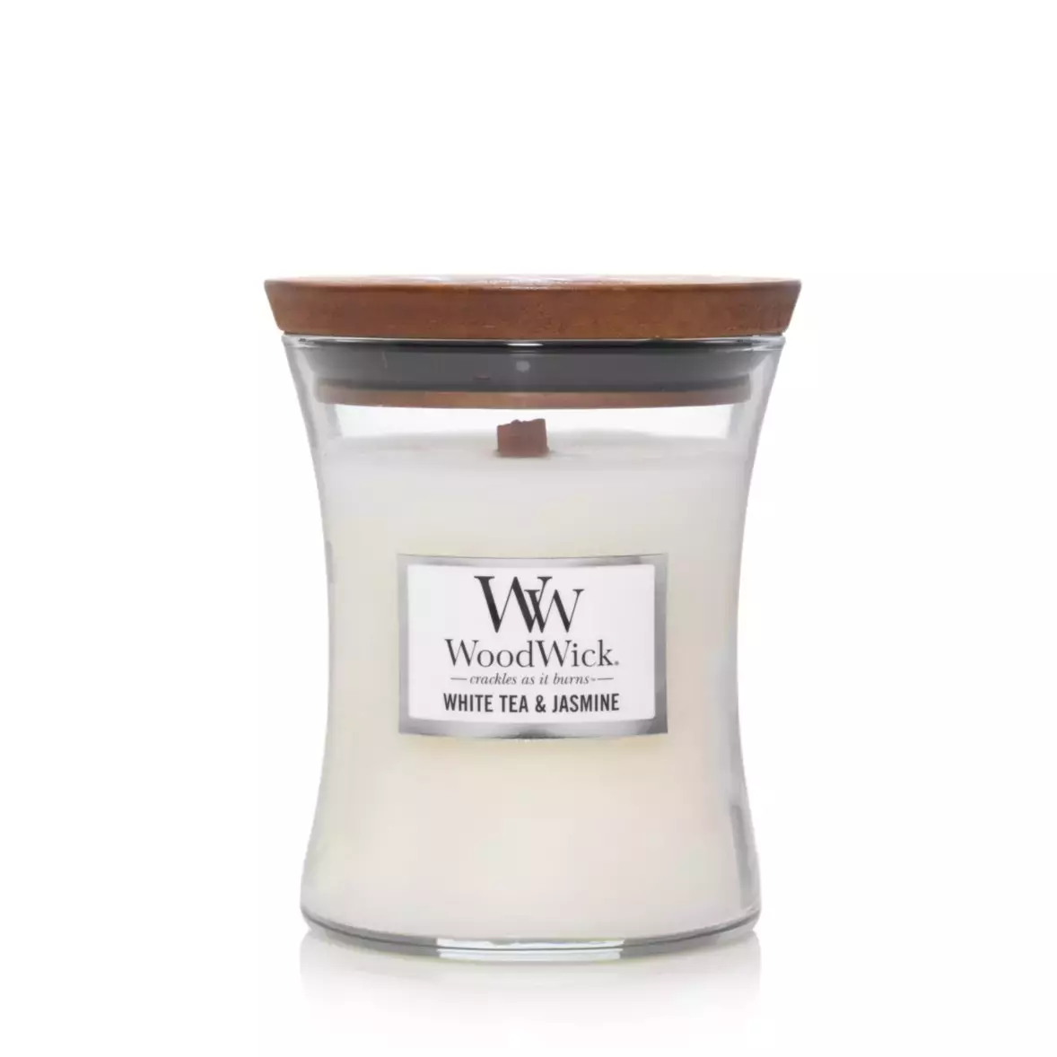 WOODWICK WHITE TEA & JASMINE MEDIUM CANDLE
