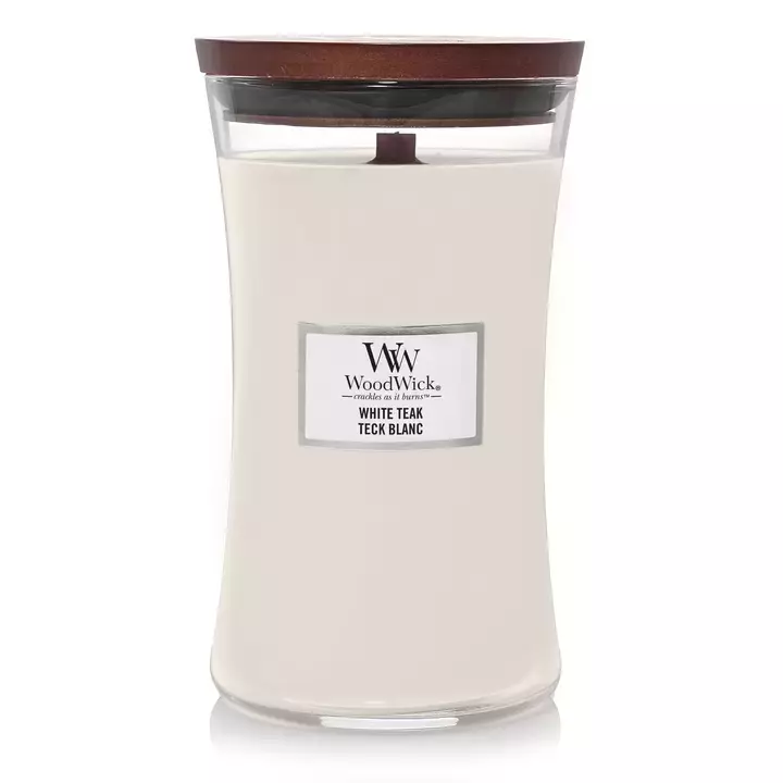 WoodWick Large Candle White Teak.