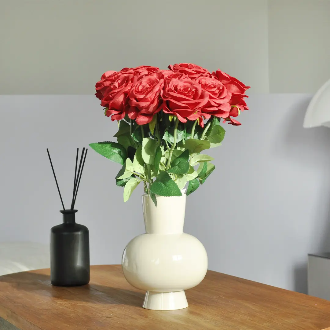 Breng de warmte en romantiek van verse rozen in huis, zonder gedoe met water geven of verwelking. Met zorgvuldig vervaardigde zijden bloemblaadjes die een natuurlijke uitstraling nabootsen, zult u versteld staan van de levensechte schoonheid van deze bloemen, die hun frisse allure behouden, seizoen na seizoen.