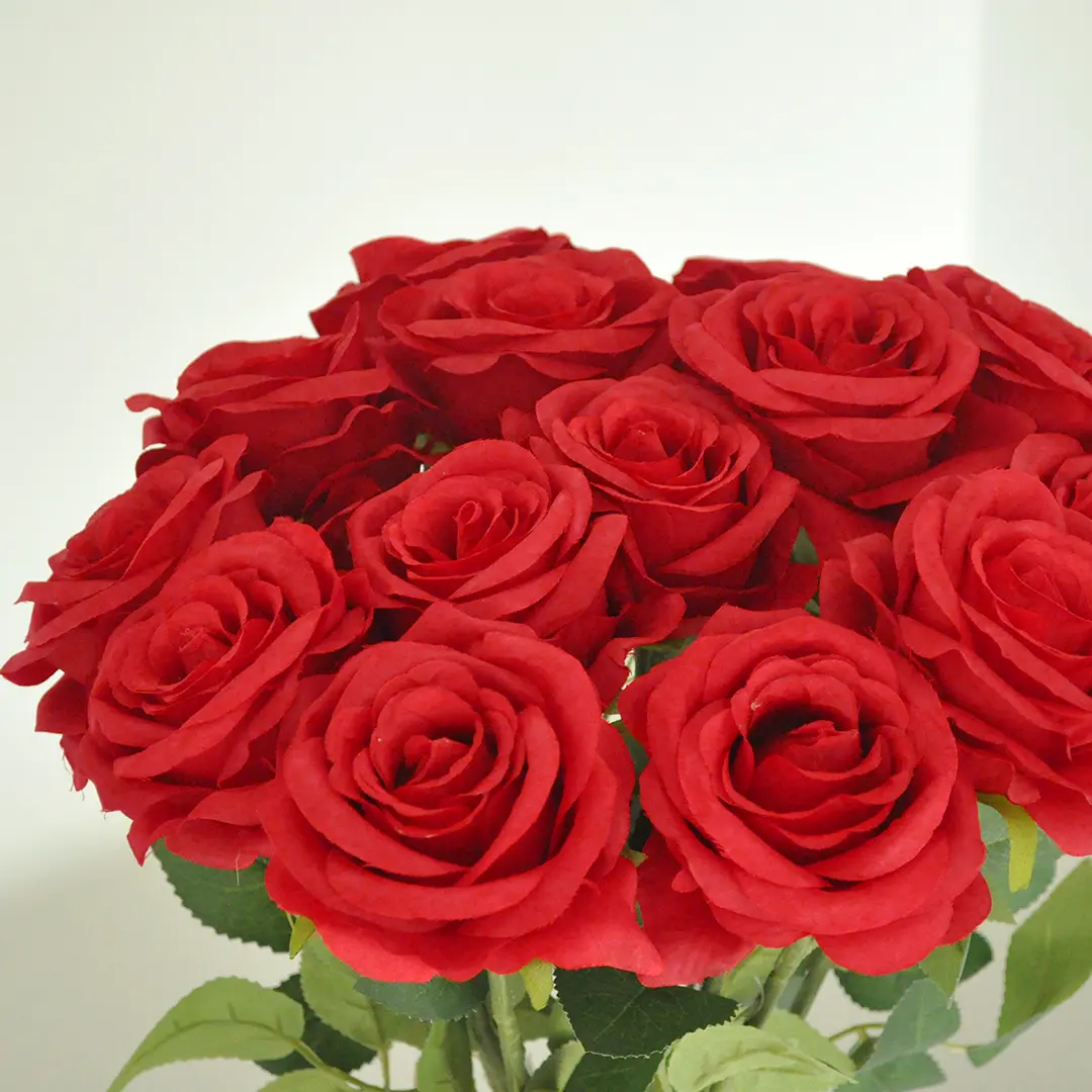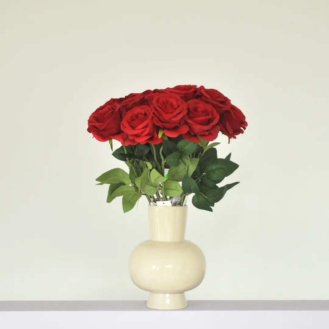 Betover uw ruimte met tijdloze elegantie en blijvende schoonheid met ons prachtige kunstbloemen boeket van zijden rode rozen!