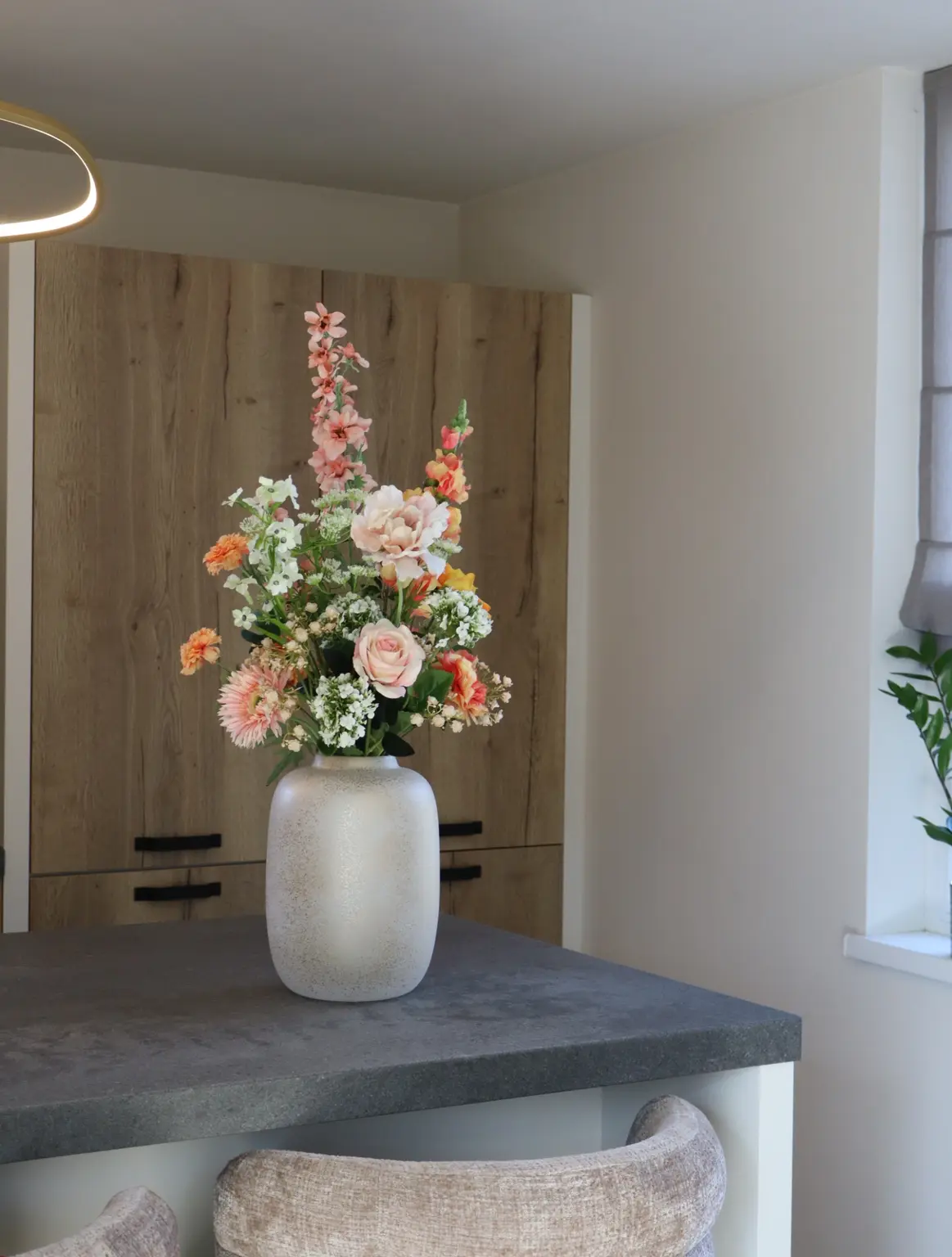 Dankzij de hoogwaardige kwaliteit en het realistische design is dit boeket van nep bloemen nauwelijks van echt te onderscheiden. Het vormt een tijdloos kunstbloemen vaas arrangement dat ideaal is als decoratie op tafel, in de hal of in de slaapkamer.