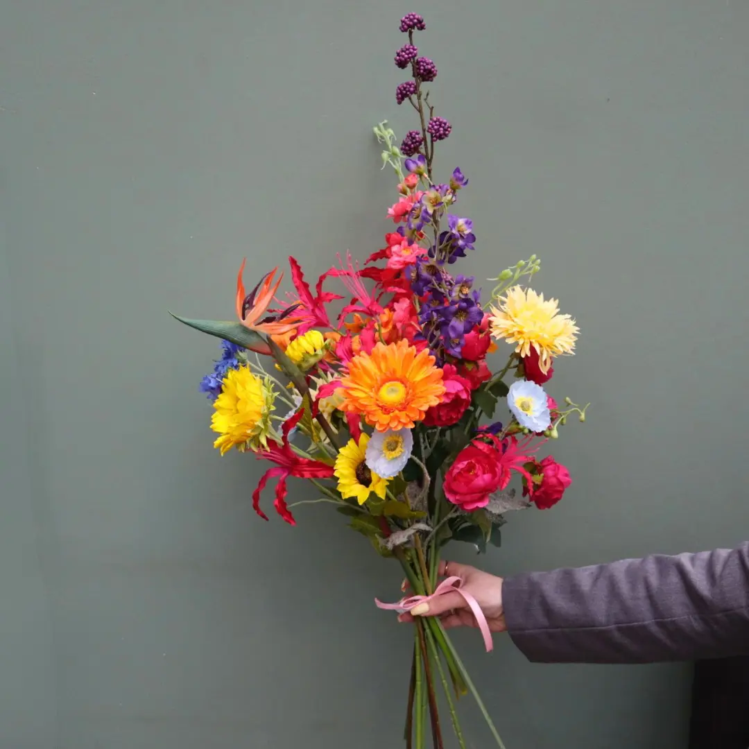 Schrijf zelf een recensie over "Zijden Kunstboeket Fel Bont Gekleurd"