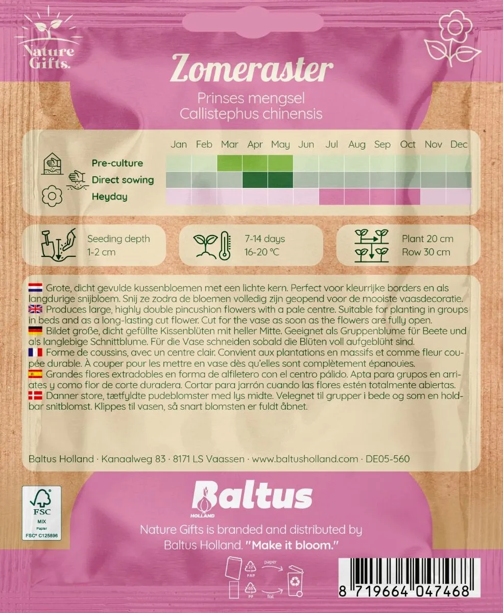 Deze weelderige, dichte kussenbloemen met hun lichte kern vormen een kleurrijk middelpunt in elke border. Geniet extra lang van hun schoonheid in huis door ze pas af te snijden wanneer de bloemen volledig geopend zijn. Zaaien tussen april en mei. Bloeit tussen juli en oktober.